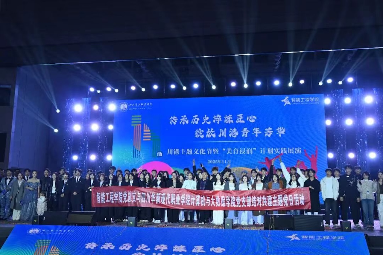 【本网消息】(智能工程学院 严志童 供稿)为进一步深化党组织结对共建成果,丰富共建形式,11月10日,四川长江职业学院智能工程学院党总支与结对单位四川华新现代职业学院计算机与大数据学院党支部联合参与智能工程学院“青春启航,智造未来”迎新晚会,并以精心编排的节目为全体新生送上温情祝福。