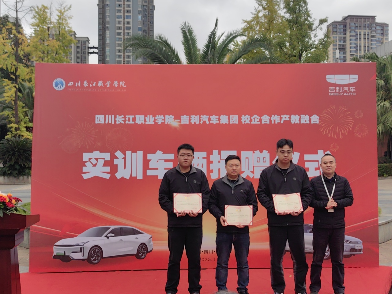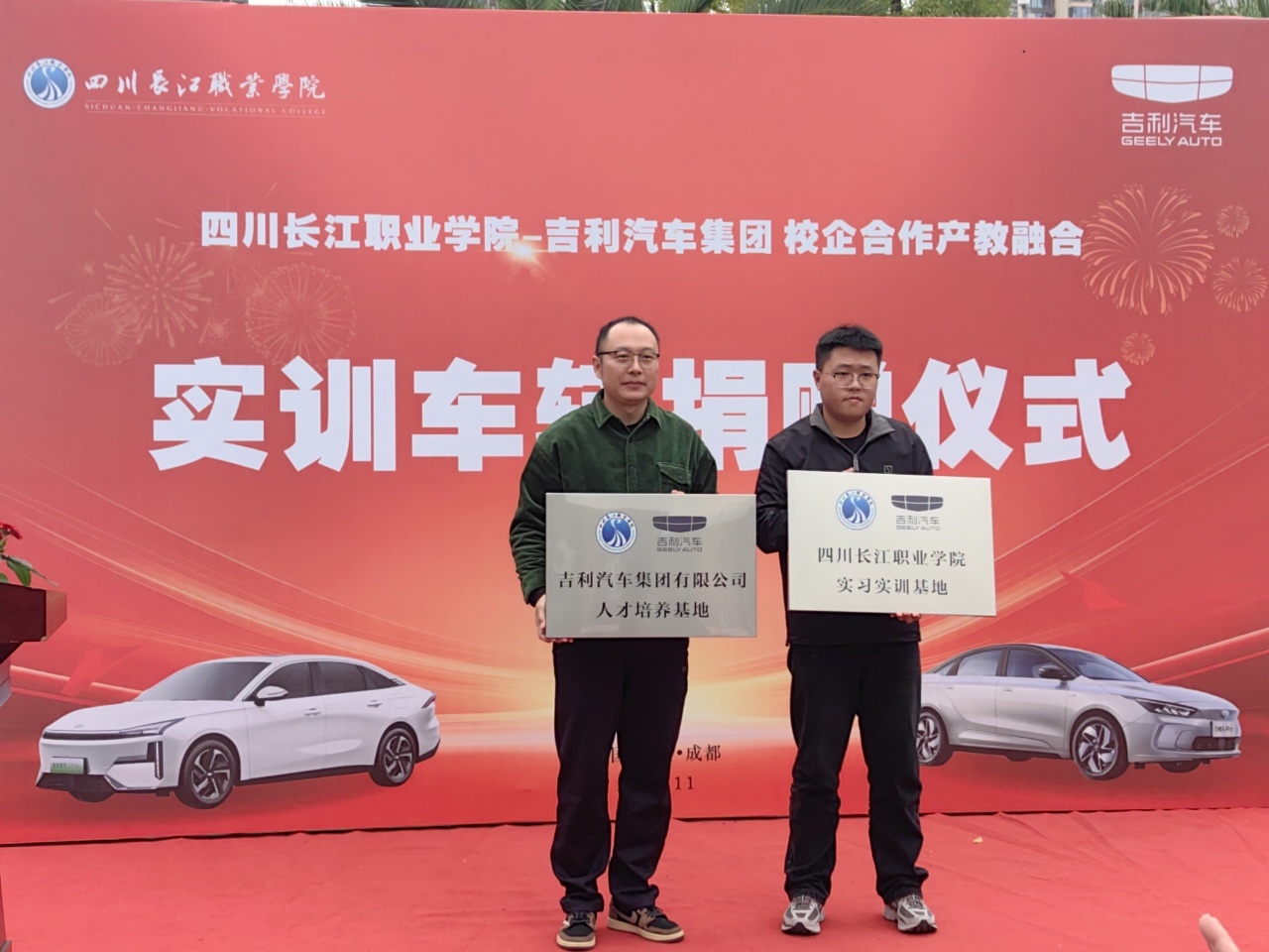 【本网消息】(智能工程学院 苏慈供稿)11月10日,四川长江职业学院与吉利汽车集团于在我校中心花园隆重举行实训车辆捐赠仪式,吉利汽车集团川渝区域经理唐高强等领导参加仪式。