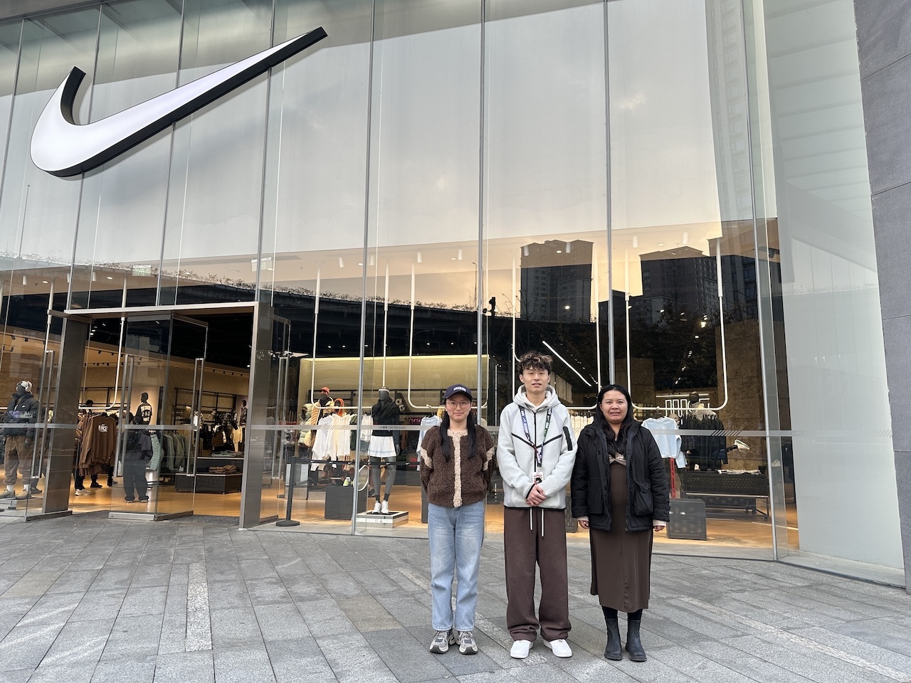 【本网消息】(智能工程学院 许露供稿)11月26日,许露、李超、马学利、黄俊秋老师前往位于繁华商圈的万象城耐克专卖店,走访了正在该店担任销售专员的大三实习生于晋祥同学,深入了解其工作实况,传递学校的关怀与勉励。