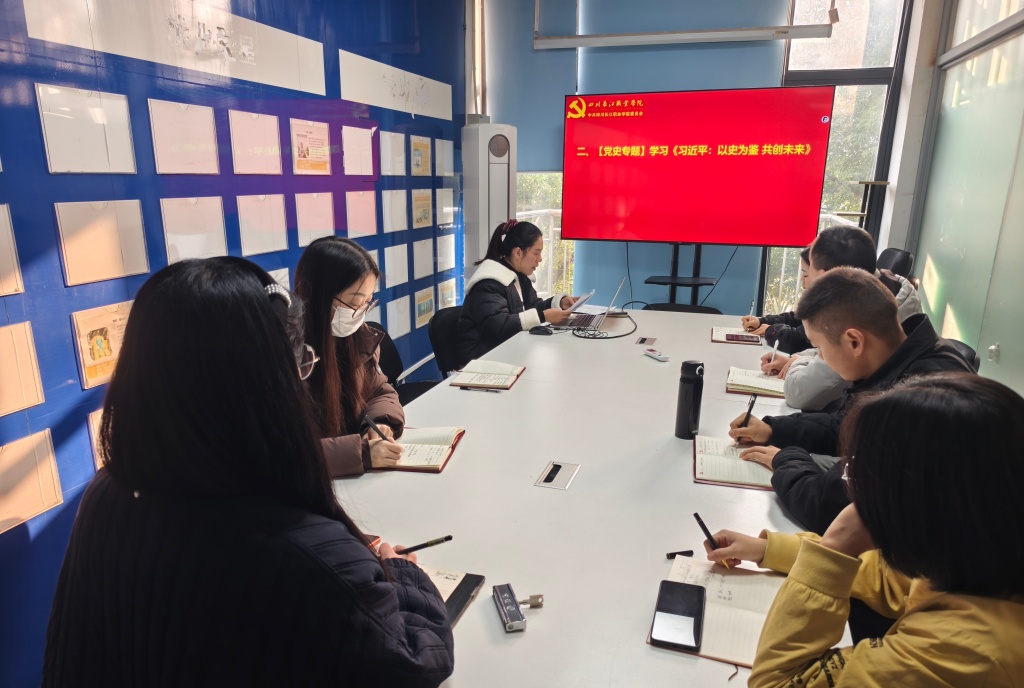 会议总结了11月党建情况:开展红色基地研学、推进“课程思政进课堂”、探索红色文化融入课程建设。全体成员集中学习了习近平总书记《以史为鉴,共创未来》,强调引导学生树立正确历史观和家国情怀。白书记结合郎酒庄园研学经历,分享红军“四渡赤水”的战略智慧与革命精神,倡导融入育人实践。