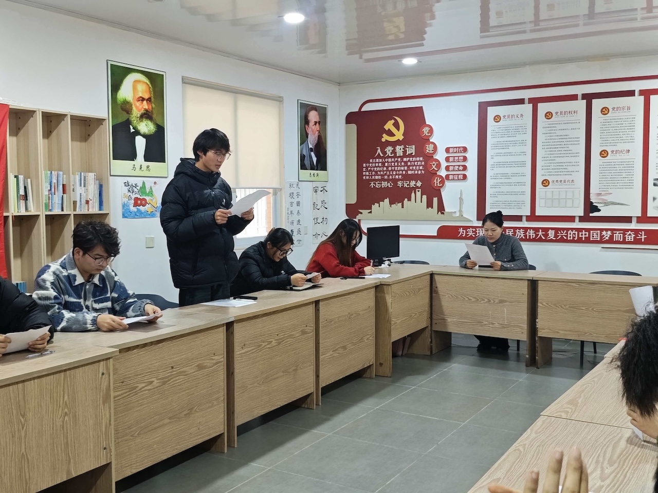 【本网消息】(智能工程学院 严志童、于云龙供稿)12月2日,智能工程学院第二党支部在党建学习活动室深入寝室开展“红色党史经典诵读”活动。活动由第二党支部书记严志童主持,学生党建工作服务站全体同学参加。