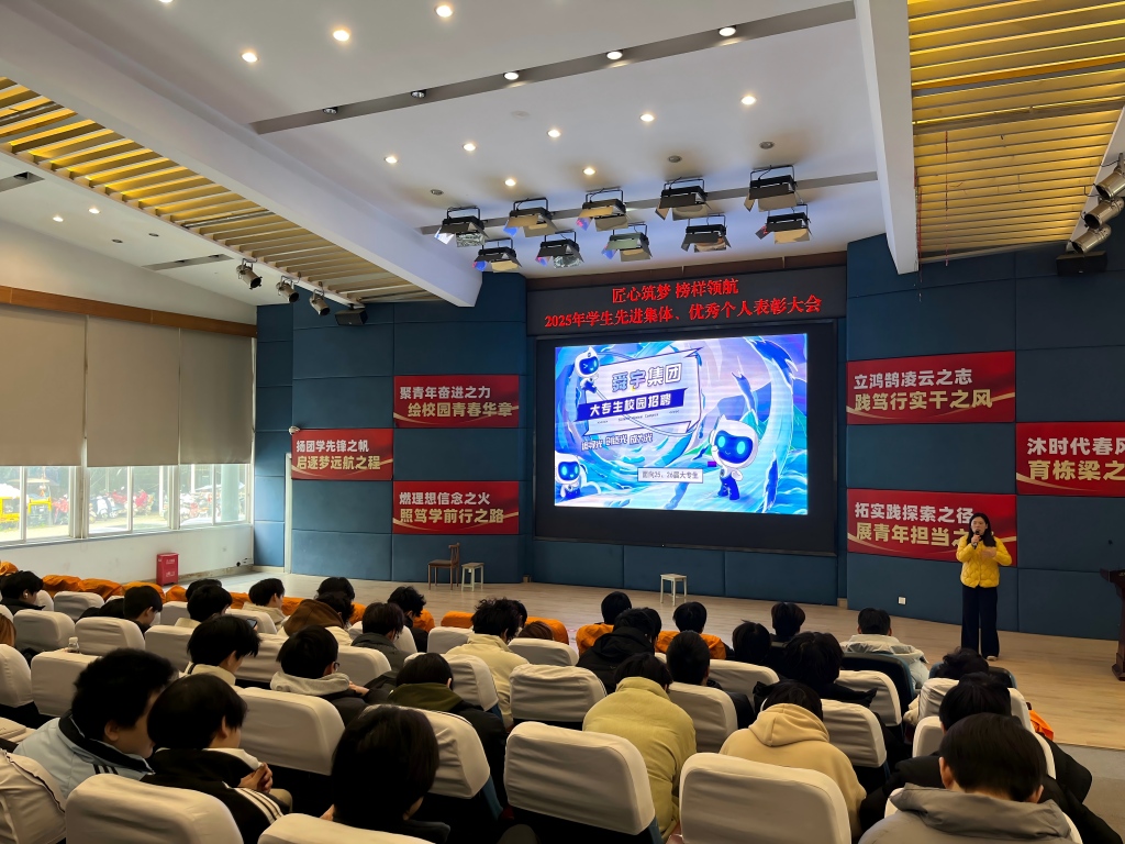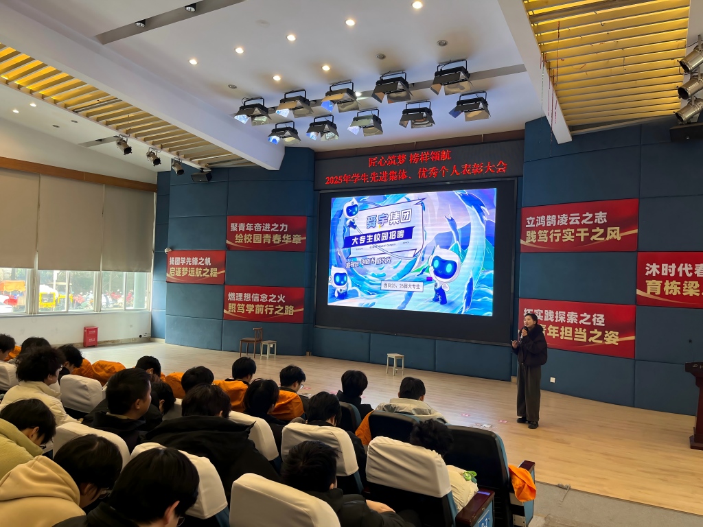 【本网消息】(智能工程学院 秦时月供稿)12月29日,舜宇集团招聘主管谢小兰受邀在学术报告厅,为24级现代信息技术系全体同学开展专场招聘宣讲会。副院长孙安民、系主任白林林,以及职业素养教师、各岗位班班导师共同出席本次活动。